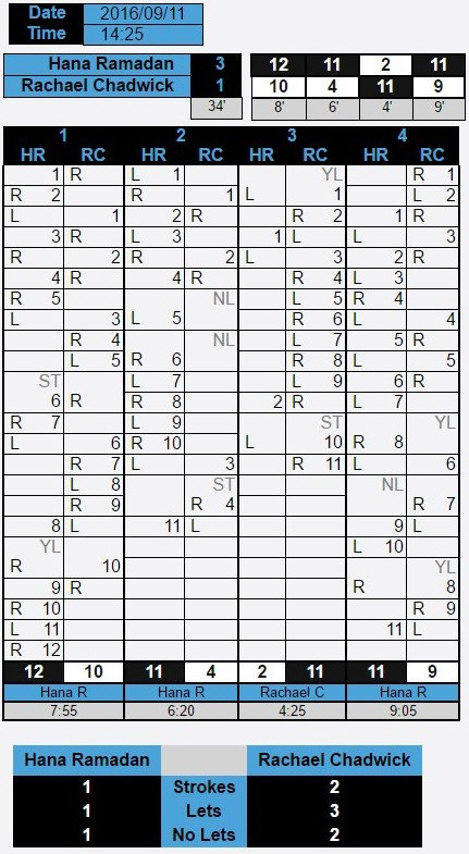 [3] Hana Ramadan (Egy) 3-1 [6] Rachael Chadwick (Eng)