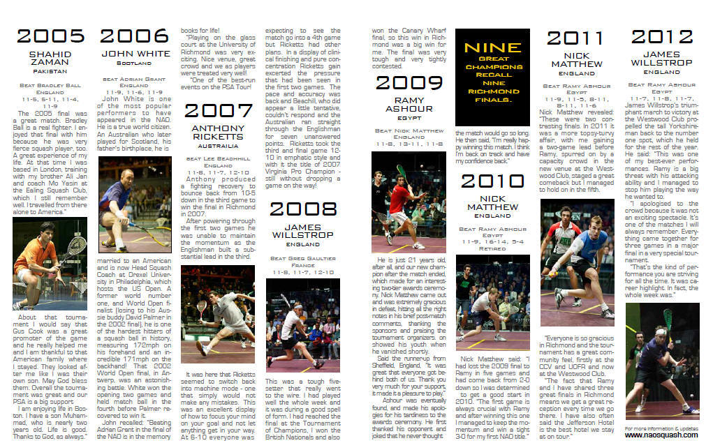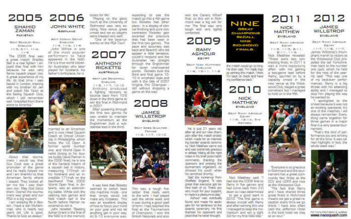 Nine great champions recall nine Richmond finals....