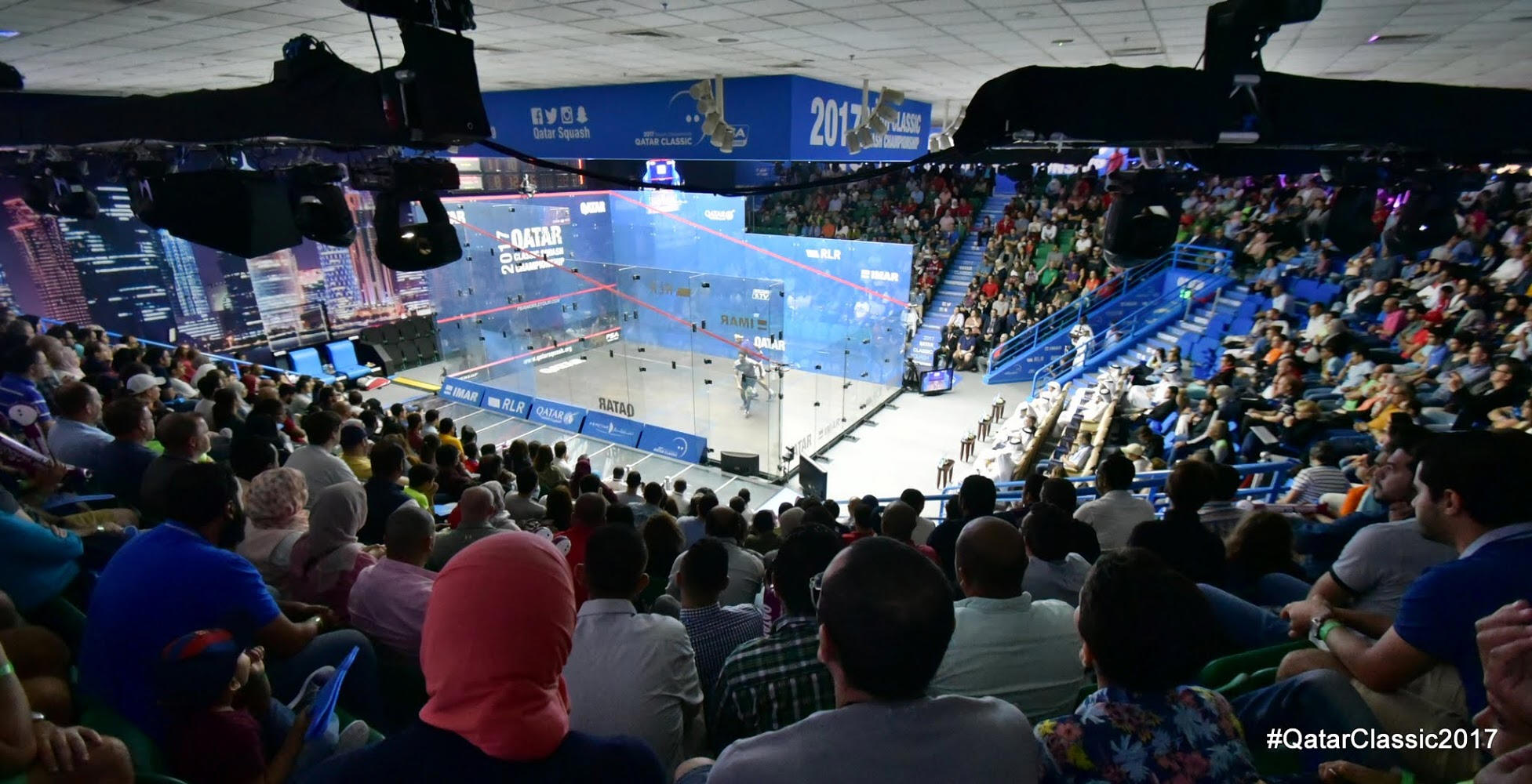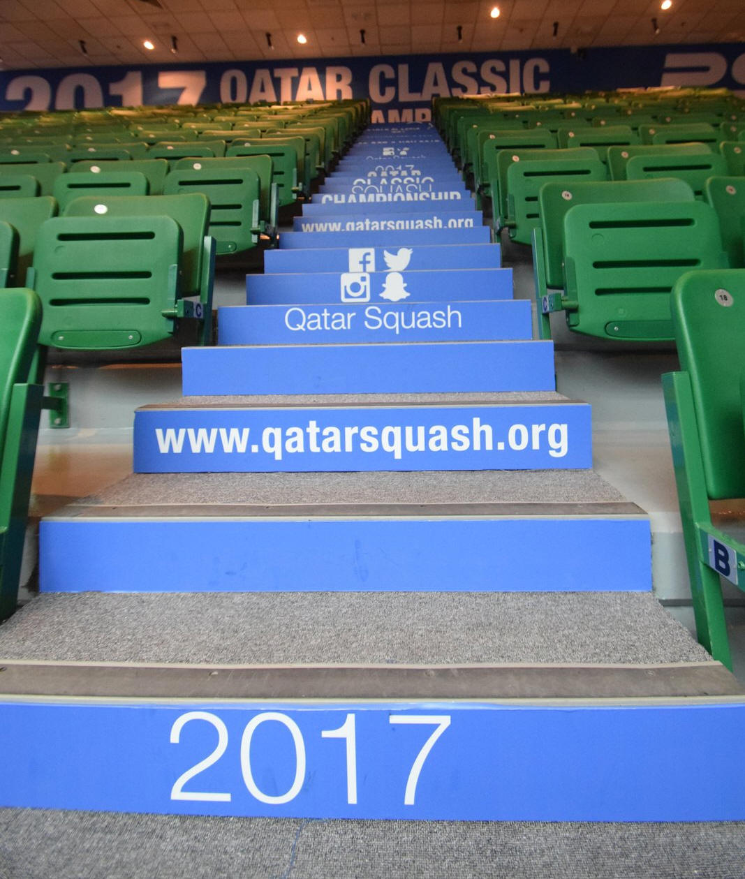 in blue fabric, the side walls were branded with the QatarClassic 2017, an impressive poster with the Doha Skyline