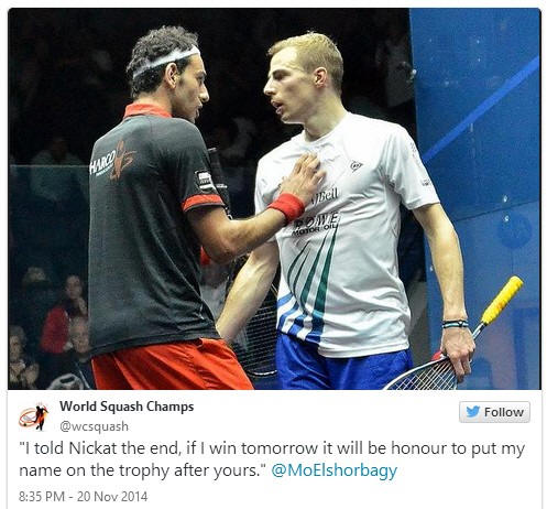 Egyptian 2014 World Champion was guaranteed as Ramy Ashour and