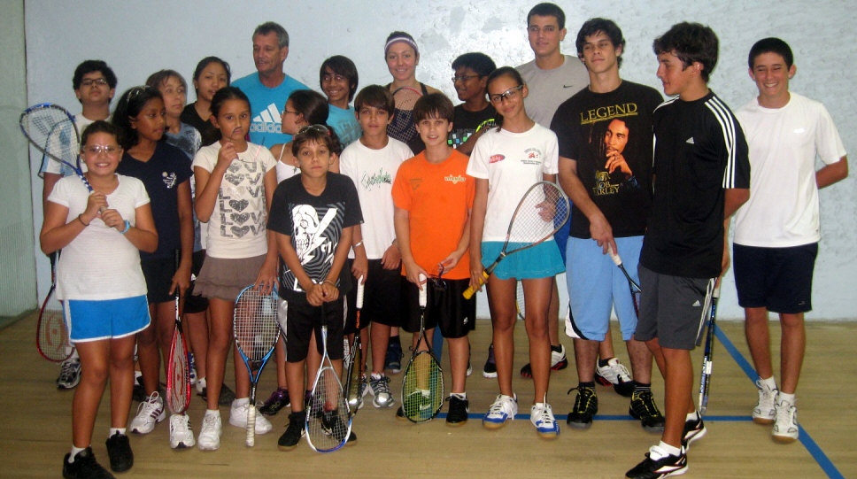 two sessions of squash a day, junior clinics in between and