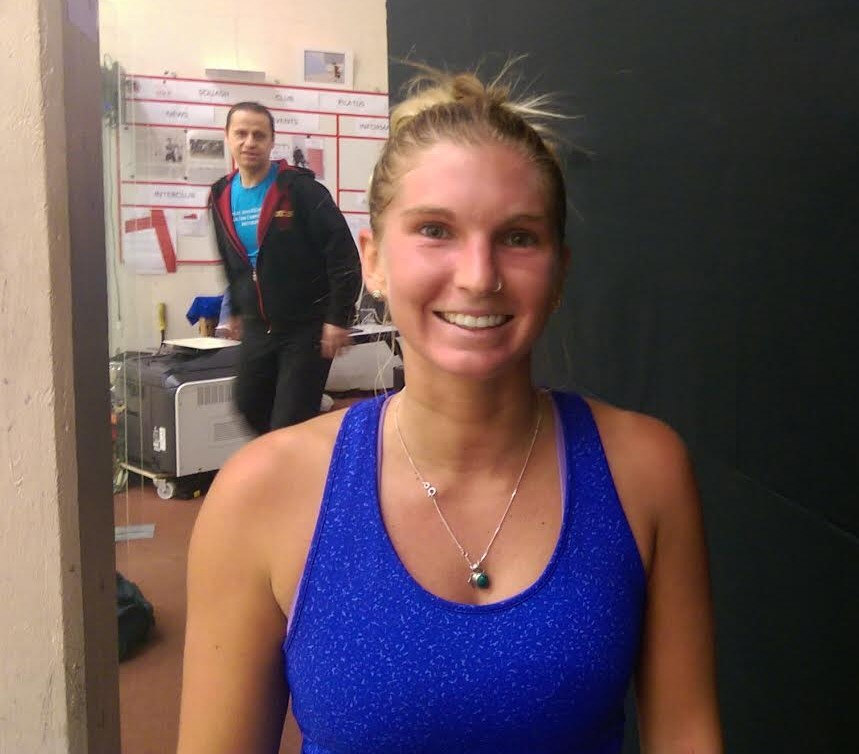 beating Chloe Mesic in a very good game of Squash.