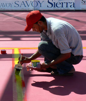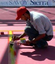 After paintbrushing the floor red, let's paint on the lines ...