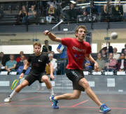 The fourth is like the 2nd, not much impact from the Dane in that one, 11/4 Chris, but the 5th started very well for him, 3/0! But that was his swan song, he would only score one more point after that, having not much energy left in the legs with all the squash he had played since Monday.