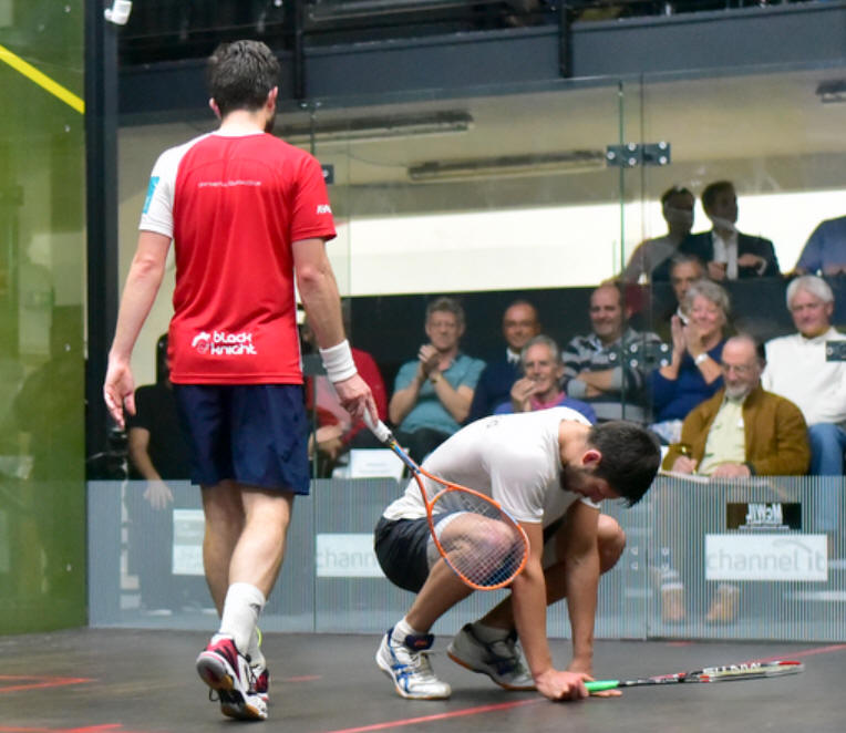 I counted, and recounted my notes, but I could only find one decision, 9/9 in the 3rd, a no let to Daryl. I have to stress that it’s also due to the extreme respect Daryl imposed on the match, as the Essex Man chose several times to play the ball – to his detriment sometimes – instead of asking for lets, allowing a fluid and flowing squash to develop, a truly and utterly joy to watch.