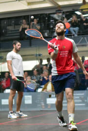 But after speaking to John Williams on the phone, his coach based in Switzerland, Kristian was back in the groove of his “new squash”, a more attacking game, powerful squash that really causes problems to his opponents. The third was close the whole way, after a 3/0 start from the Danish. 3/3, 4/4. Chris takes a slight advantage, 2 points, but again, 8/8, 9/9, 10/10, 11/11, 121/12, with Chris having one chance to take the game while Kristian finally closed it on his third, 14/12.