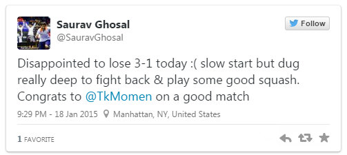 Momen got the better of Indian Saurav Ghosal, winning 3-1 in a mixed