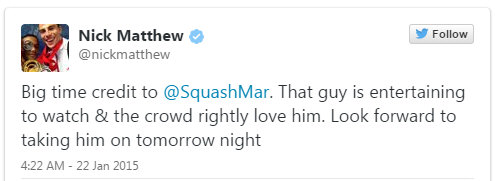 [3] Nick Matthew (Eng) 3-1 [8] Simon Rosner (Ger)