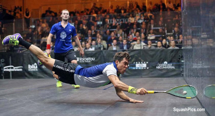 Gregory Gaultier in the quarter-finals,.