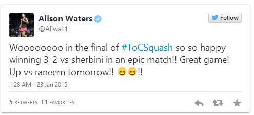[5] Alison Waters (Eng) 3-2 [4] Nour El Sherbini (Egy)