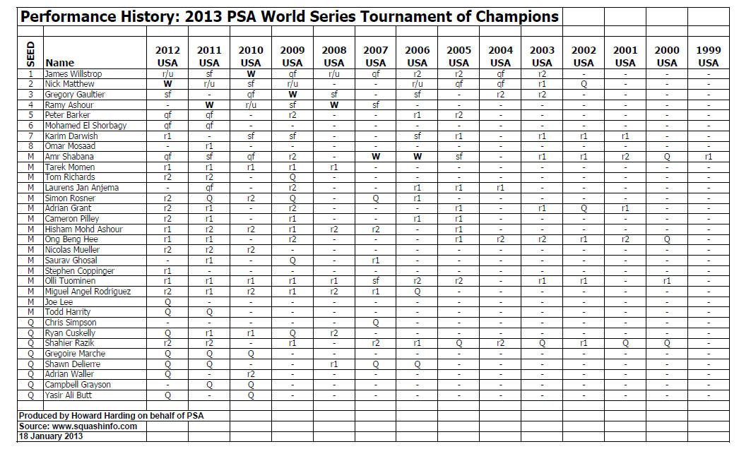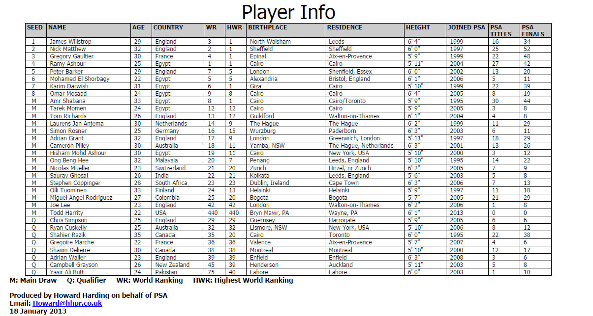 announced the entry list for the world’s largest spectator squash